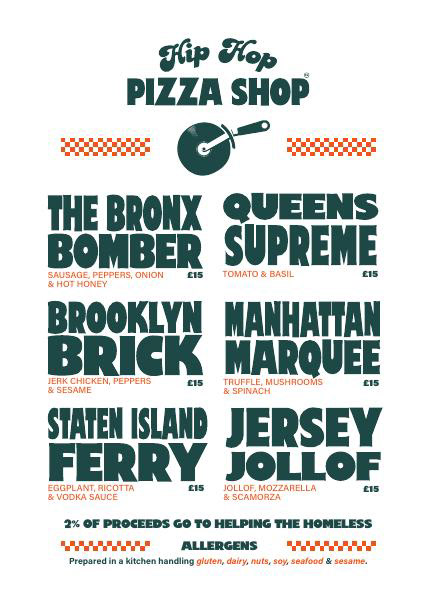 Visually, the project blends Pizza By Jagua’s premium, contemporary identity with the bold, energetic personality of Hip Hop LDN. The environment, menus, and promotional materials were adapted to reflect this fusion, creating a cohesive experience that feels both elevated and rooted in music culture.