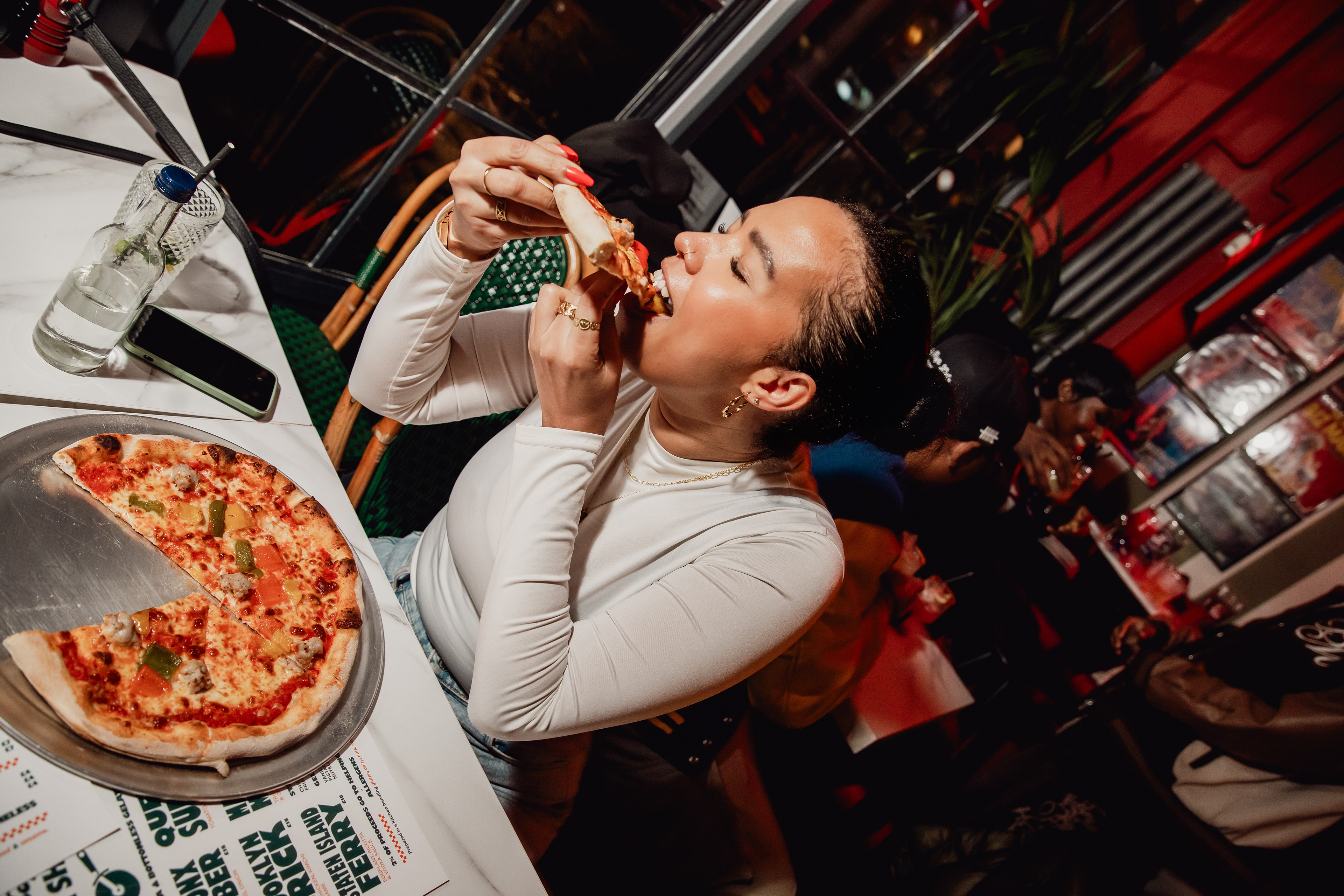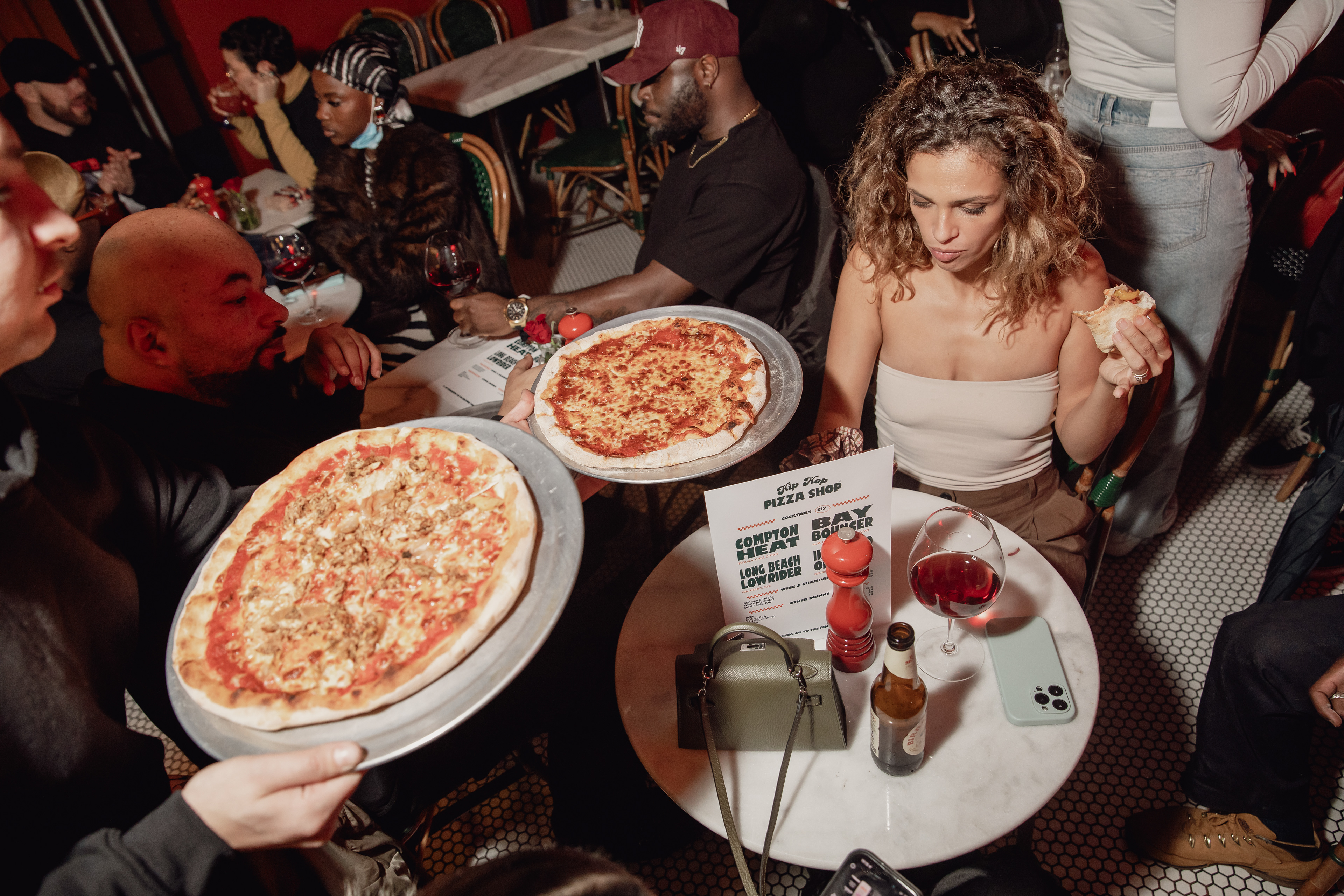 The concept reimagines the pizzeria as a music-led social space where dining and nightlife exist side by side. The restaurant becomes fully immersed in hip hop culture, with vintage album artwork lining the walls, DJs playing exclusively on vinyl, and a carefully curated soundtrack that shapes the atmosphere from dinner through late evening.