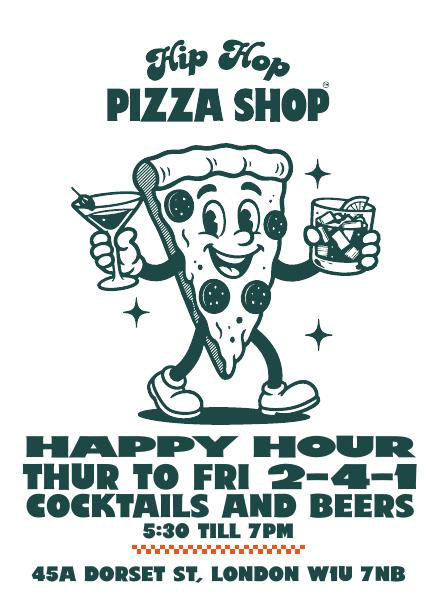 Hip Hop Pizza Shop is a collaboration between Pizza By Jagua and Hip Hop LDN, bringing together food, music, and culture into one shared weekly experience in the heart of Baker Street. While Pizza By Jagua provides the venue, menu, and cocktail program, Hip Hop LDN delivers its award-winning entertainment, transforming the restaurant into a dedicated HHL home throughout the week.